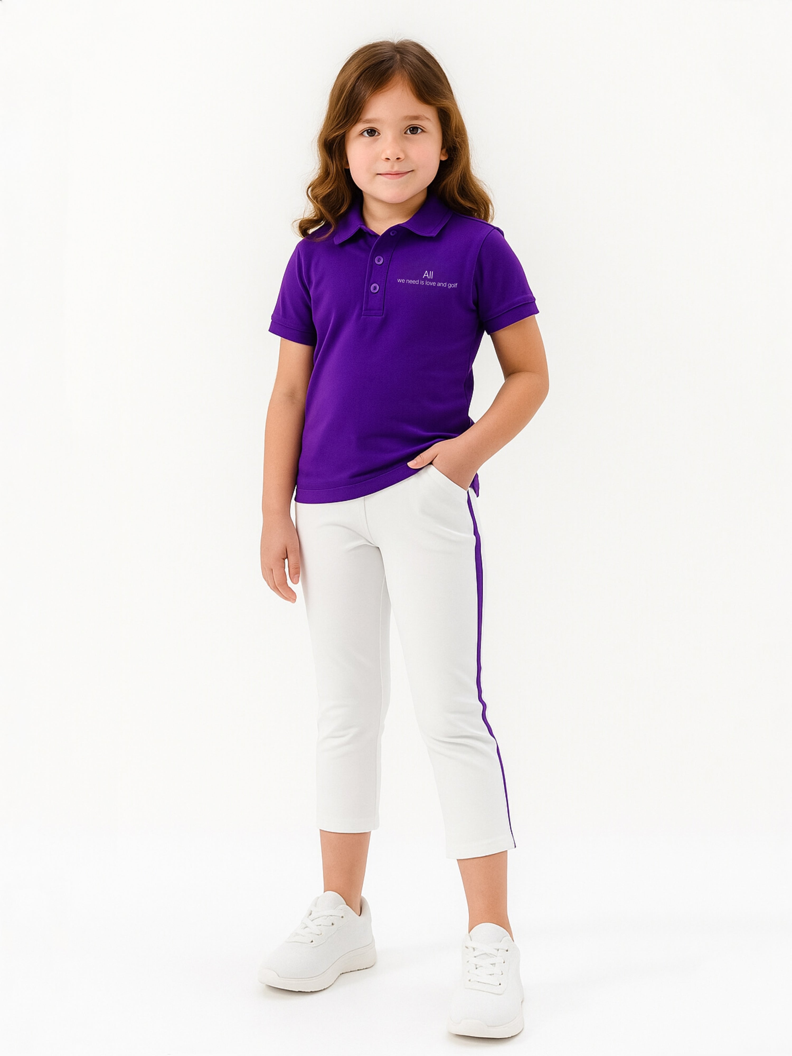 ¡Bienvenido a un mundo de movimiento y descubrimientos brillantes! Estos pantalones capri blancos con franjas laterales moradas conquistarán a los niños más enérgicos: son elegantes, cómodos y maravillosamente prácticos.